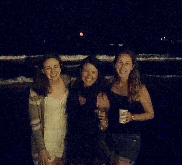 Grainy photo with Cait, Sam, and the pink moon